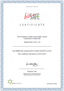 The Safety and Security Watch Group (SSWG) recognises the effort of the business community in adopting robust measures and being prepared against the threat of crime and terrorism. Singapore G is one of the few private industrial commercial buildings to receive the prestigious SSWG Award 6 years in a row after passing stringent audits by the SCDF and the Singapore Police Force.
